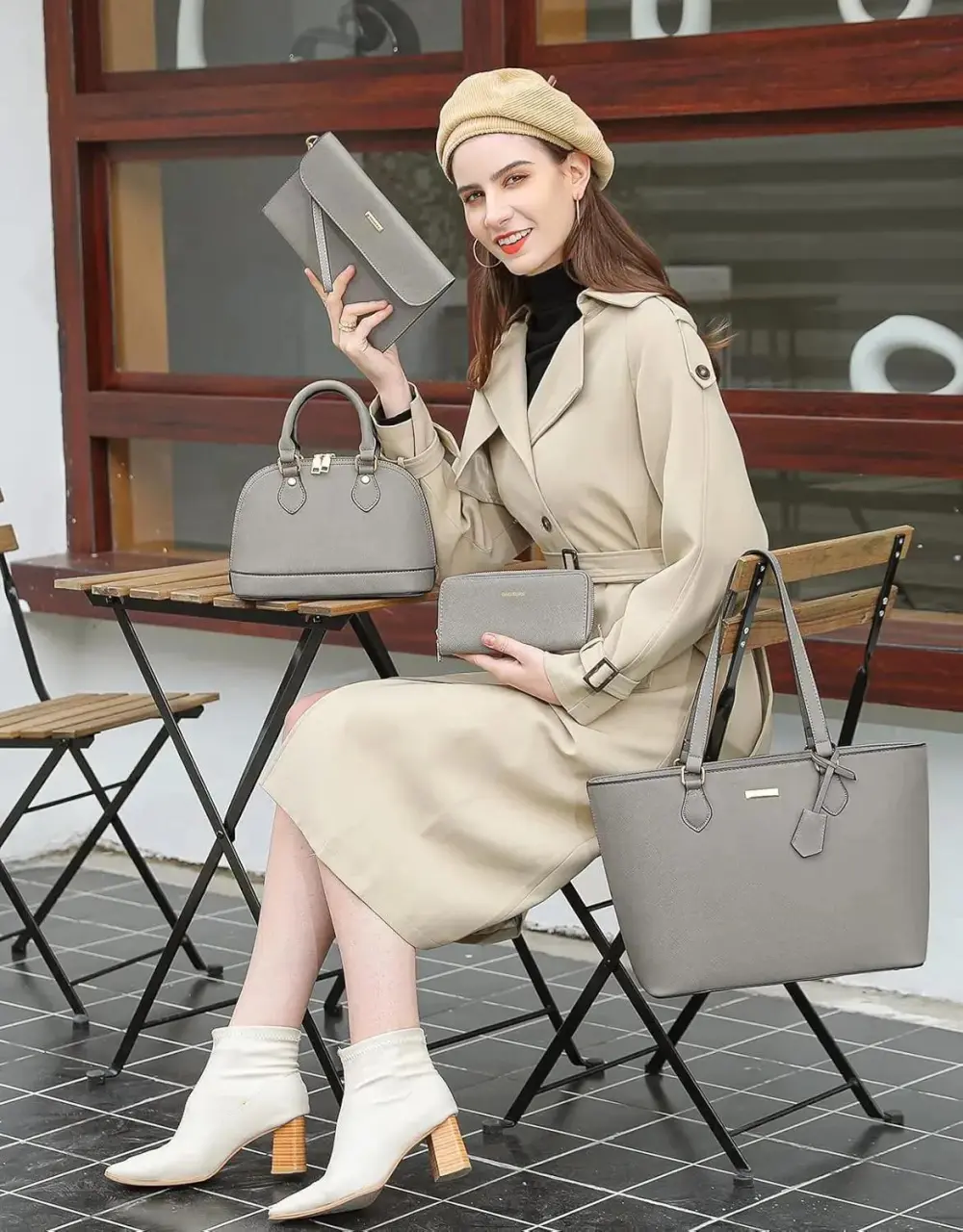 • 4PCS Women Fashion Handbags Purses Wallet Tote Shoulder Bags